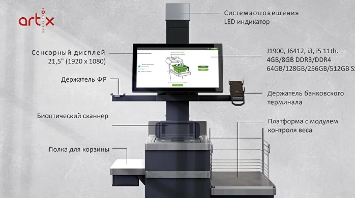 Удобство обслуживания обеспечивает система визуального оповещения. Биотический сканер в разы ускорит процесс покупки, поможет сократить очереди.