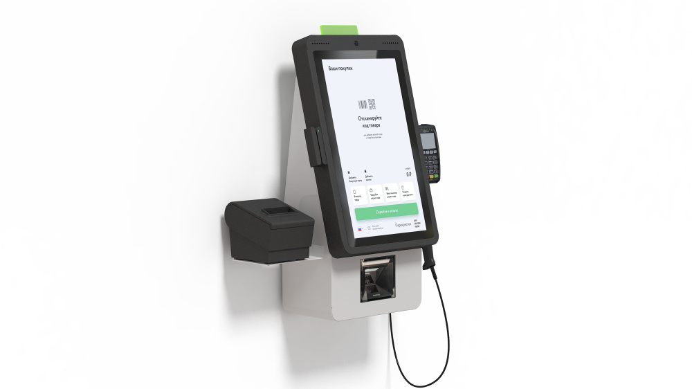 Касса самообслуживания «POScenter SCO-K210 Light_V2» — разработана для экспресс покупателей с небольшим количеством покупок, с креплением на стену или прилавок.