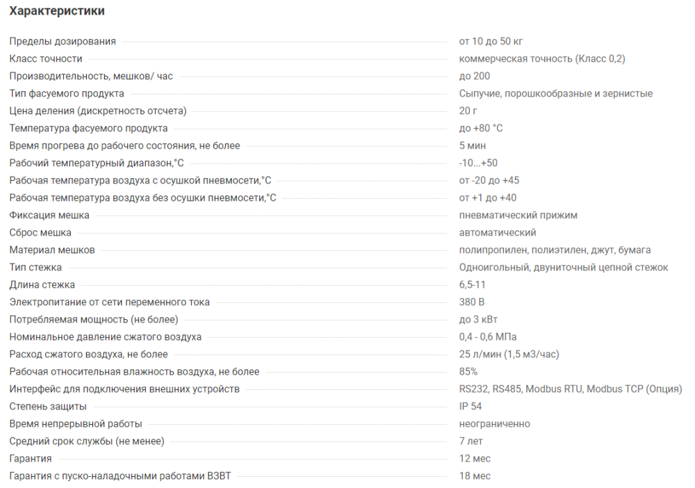 В линию включен дозатор для фасовки, транспортер для отвода мешка в зону зашивки и мешкозашивочная станция с регулировкой под высоту мешка.