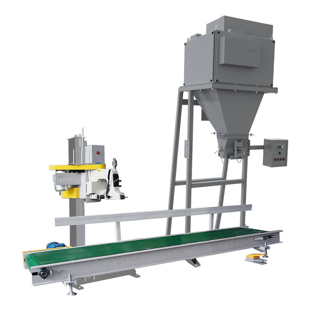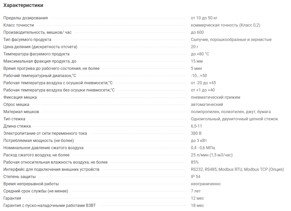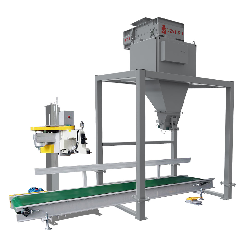 В линию включен дозатор для фасовки, транспортер для отвода мешка в зону зашивки и мешкозашивочная станция с регулировкой под высоту мешка.